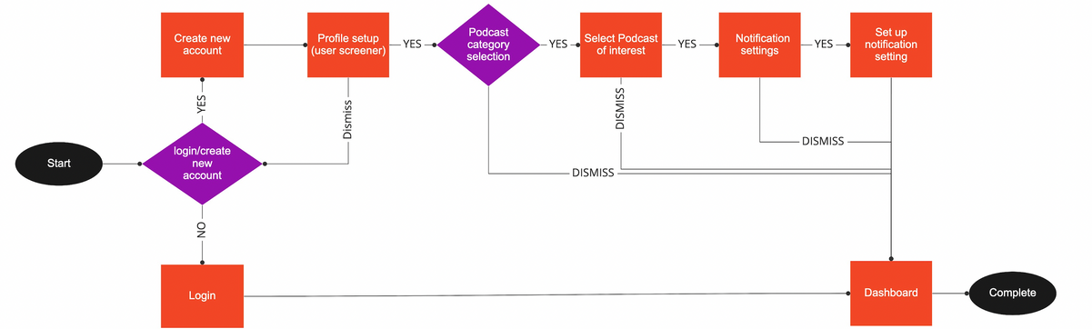 The most important part of the product is the onboarding process. That's where our users will select how podcasts will be recommended for them. So, I began sketching and wireframing the onboarding process with 2 main things in mind: